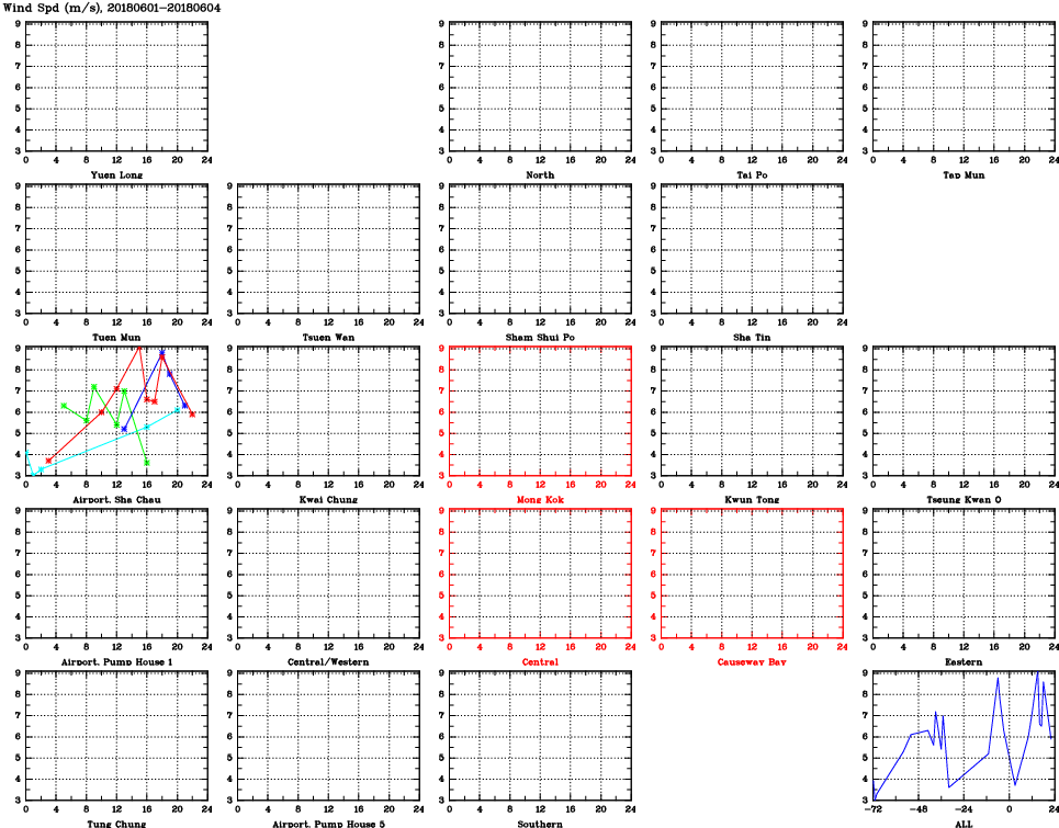 | Air Quality Data Time Series for WS (2018/06/04) | ( Line colors: Day -3 Day -2 Day -1 Current day ) | 2D Map Current AQHI |