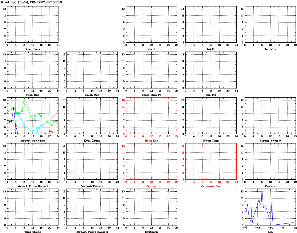 | Air Quality Data Time Series for WS (2018/06/10) | ( Line colors: Day -3 Day -2 Day -1 Current day ) | 2D Map Current AQHI |