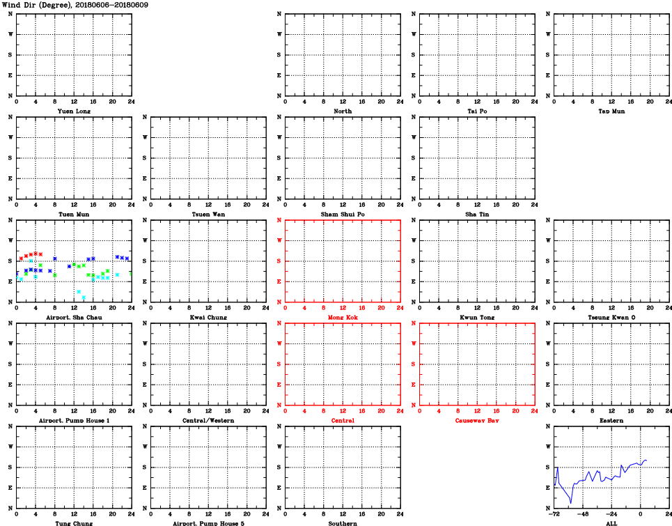| Air Quality Data Time Series for WD (2018/06/09) | ( Line colors: Day -3 Day -2 Day -1 Current day ) | 2D Map Current AQHI |