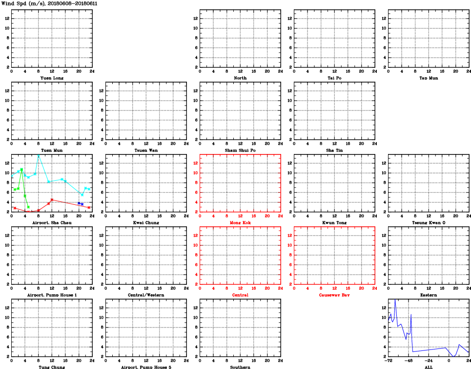 | Air Quality Data Time Series for WS (2018/06/11) | ( Line colors: Day -3 Day -2 Day -1 Current day ) | 2D Map Current AQHI |