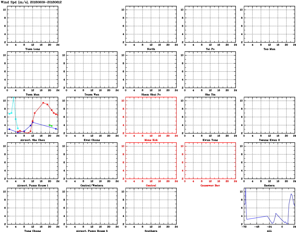 | Air Quality Data Time Series for WS (2018/06/12) | ( Line colors: Day -3 Day -2 Day -1 Current day ) | 2D Map Current AQHI |