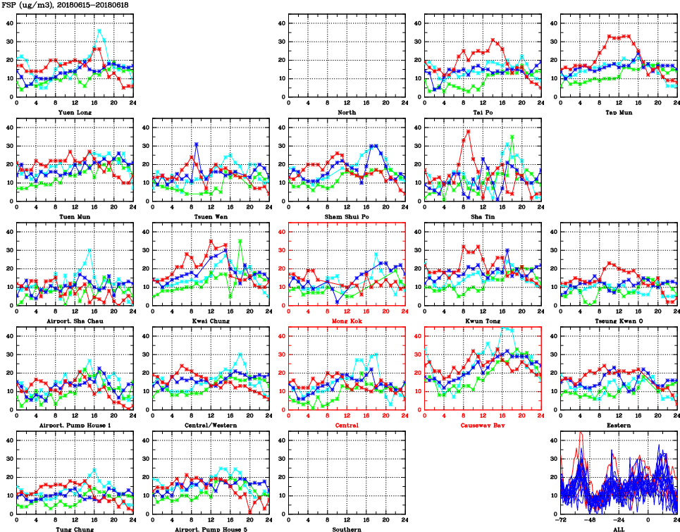 | Air Quality Data Time Series for FSP (2018/06/18) | ( Line colors: Day -3 Day -2 Day -1 Current day ) | 2D Map Current AQHI |