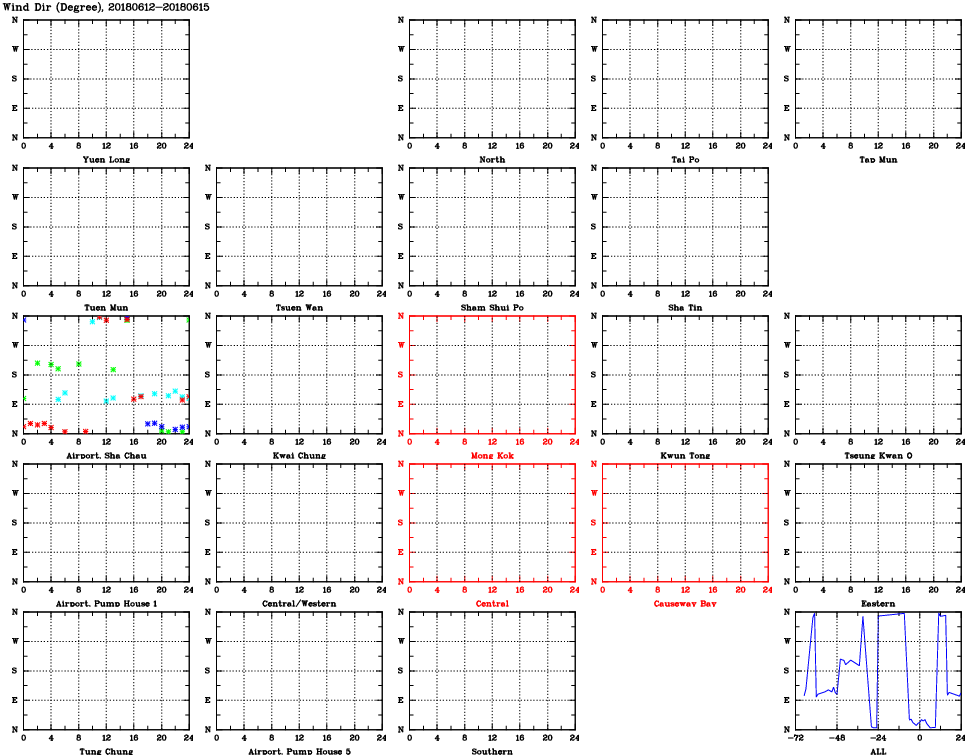 | Air Quality Data Time Series for WD (2018/06/15) | ( Line colors: Day -3 Day -2 Day -1 Current day ) | 2D Map Current AQHI |