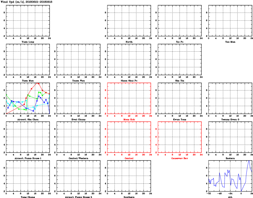 | Air Quality Data Time Series for WS (2018/06/18) | ( Line colors: Day -3 Day -2 Day -1 Current day ) | 2D Map Current AQHI |