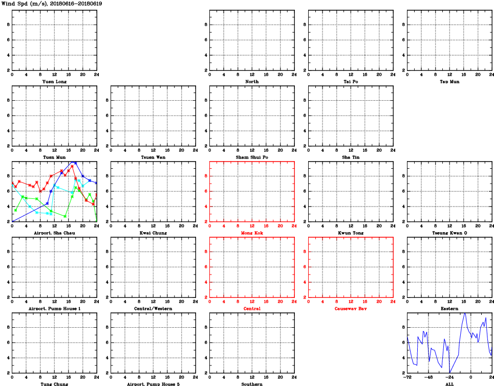 | Air Quality Data Time Series for WS (2018/06/19) | ( Line colors: Day -3 Day -2 Day -1 Current day ) | 2D Map Current AQHI |