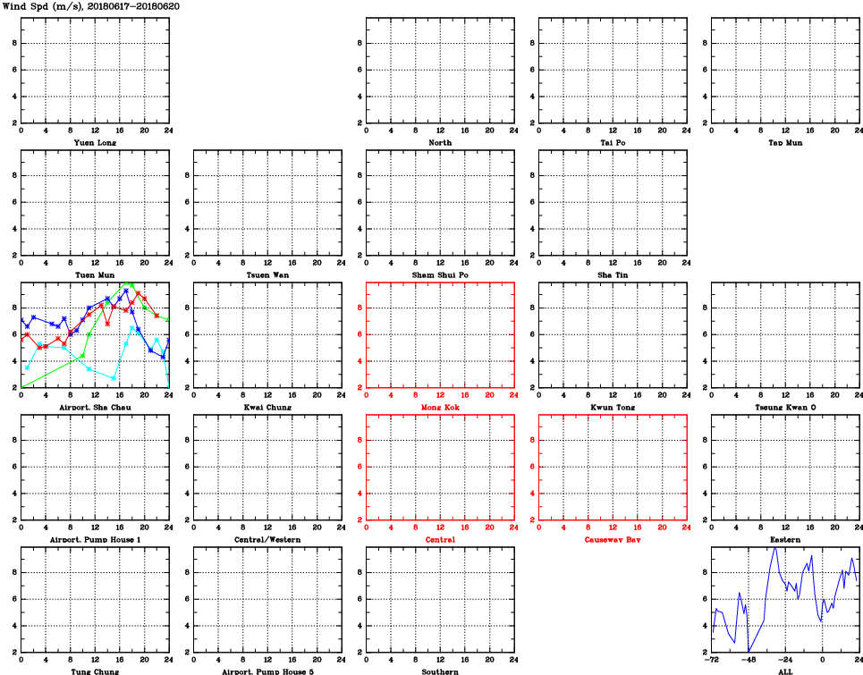 | Air Quality Data Time Series for WS (2018/06/20) | ( Line colors: Day -3 Day -2 Day -1 Current day ) | 2D Map Current AQHI |