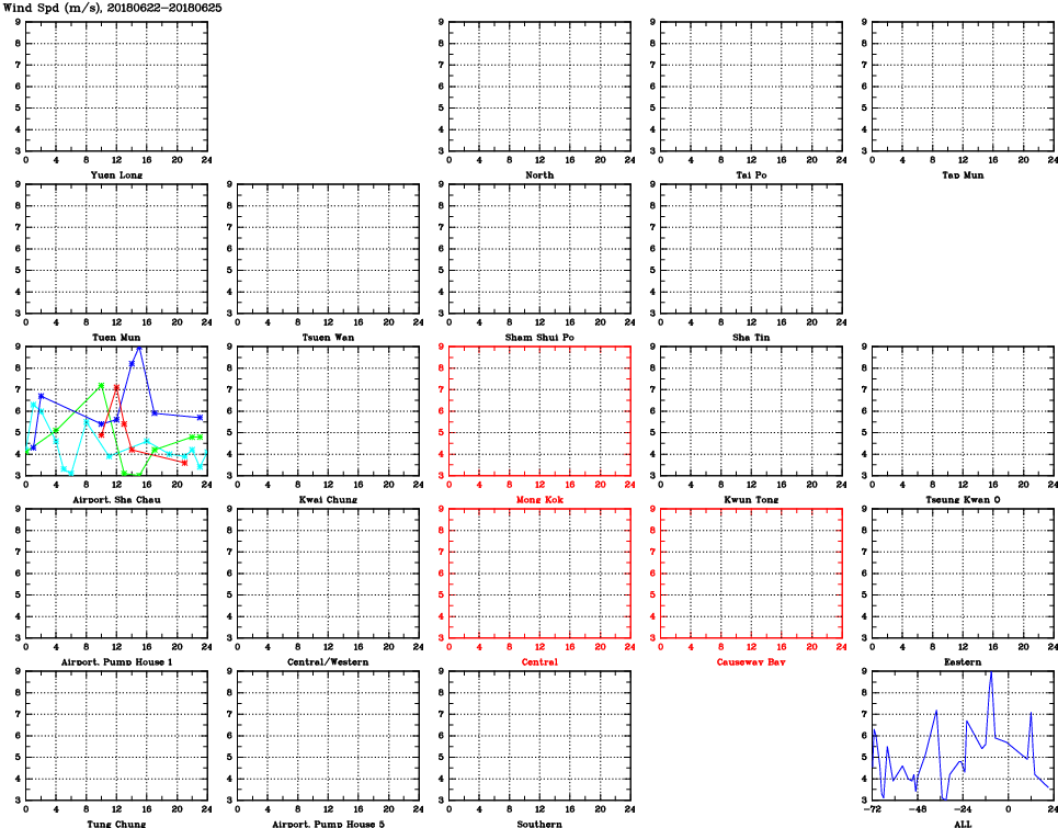 | Air Quality Data Time Series for WS (2018/06/25) | ( Line colors: Day -3 Day -2 Day -1 Current day ) | 2D Map Current AQHI |