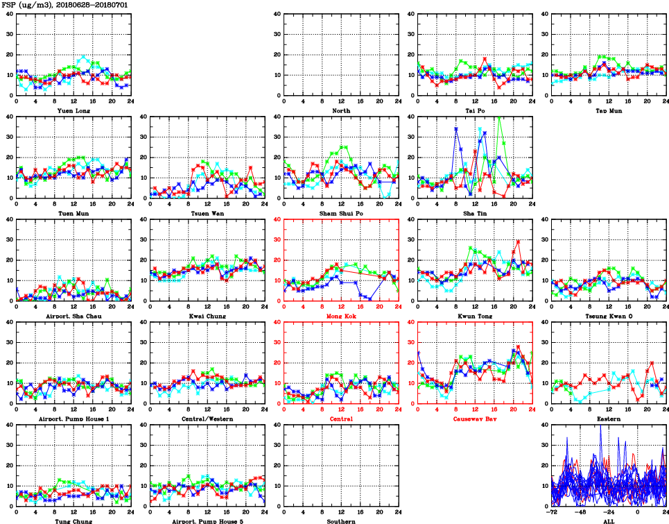 | Air Quality Data Time Series for FSP (2018/07/01) | ( Line colors: Day -3 Day -2 Day -1 Current day ) | 2D Map Current AQHI |