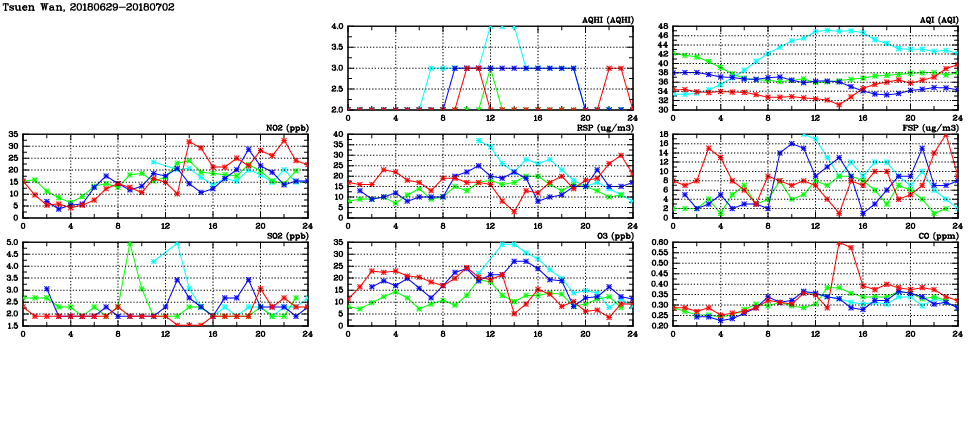 | Parameters: | AQHI | AQI | RSP | FSP | NO2 | SO2 | O3 | CO | Temp | WS | WD |
