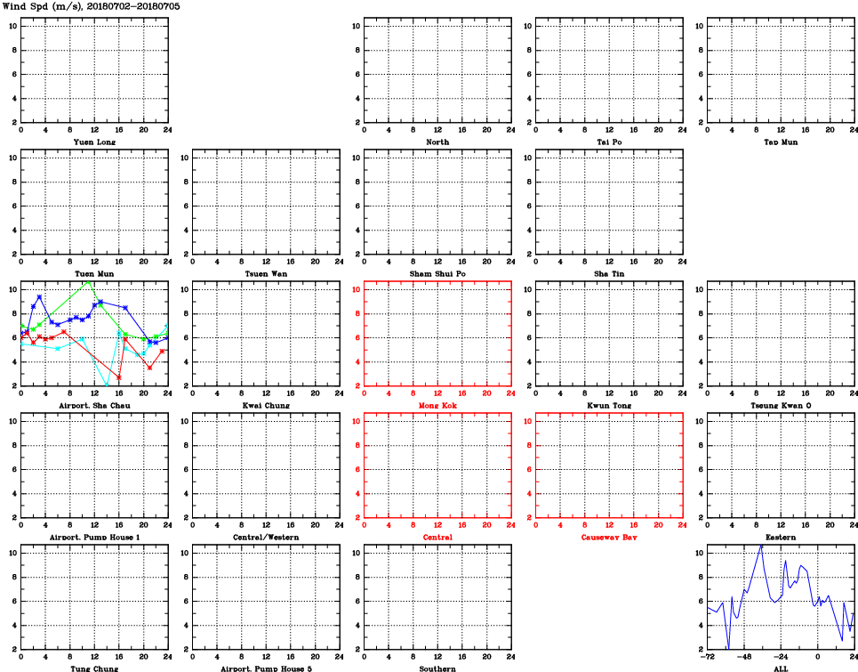 | Air Quality Data Time Series for WS (2018/07/05) | ( Line colors: Day -3 Day -2 Day -1 Current day ) | 2D Map Current AQHI |