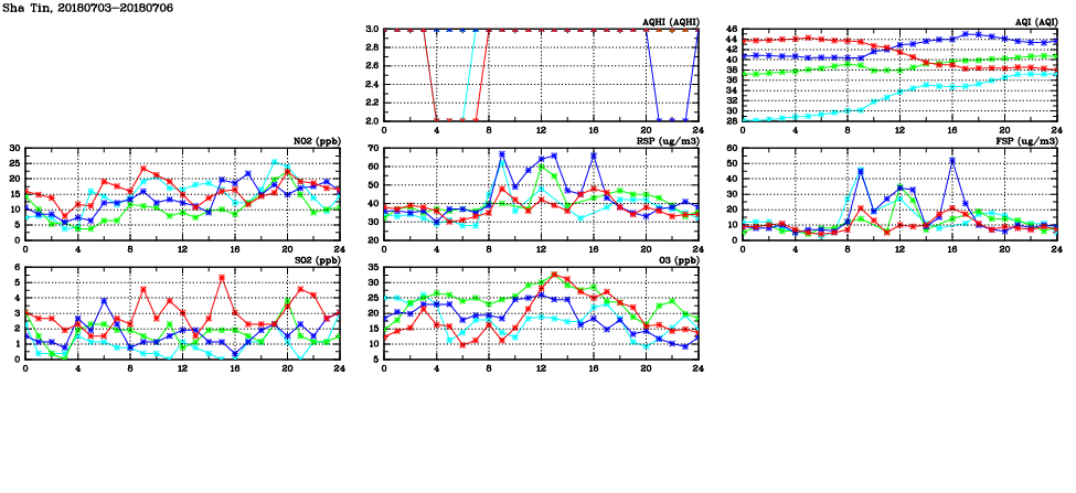 | Air Quality Data Time Series in Sha Tin (2018/07/06) | ( Line colors: Day -3 Day -2 Day -1 Current day ) | 2D Map Current AQHI |