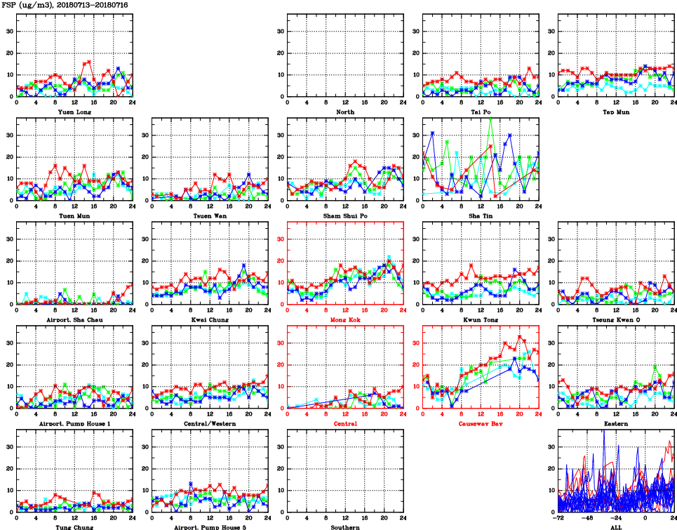 | Air Quality Data Time Series for FSP (2018/07/16) | ( Line colors: Day -3 Day -2 Day -1 Current day ) | 2D Map Current AQHI |