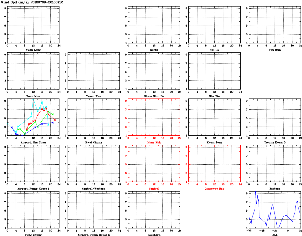 | Air Quality Data Time Series for WS (2018/07/12) | ( Line colors: Day -3 Day -2 Day -1 Current day ) | 2D Map Current AQHI |
