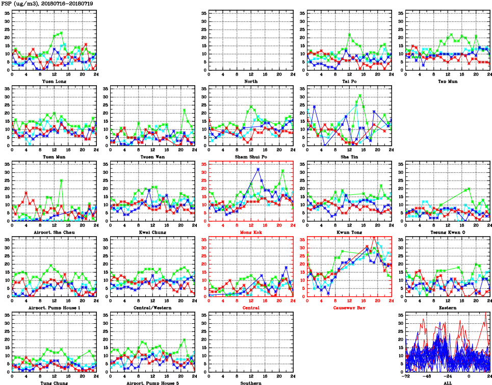 | Air Quality Data Time Series for FSP (2018/07/19) | ( Line colors: Day -3 Day -2 Day -1 Current day ) | 2D Map Current AQHI |