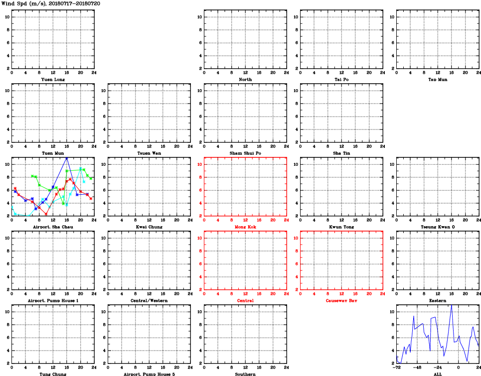 | Air Quality Data Time Series for WS (2018/07/20) | ( Line colors: Day -3 Day -2 Day -1 Current day ) | 2D Map Current AQHI |