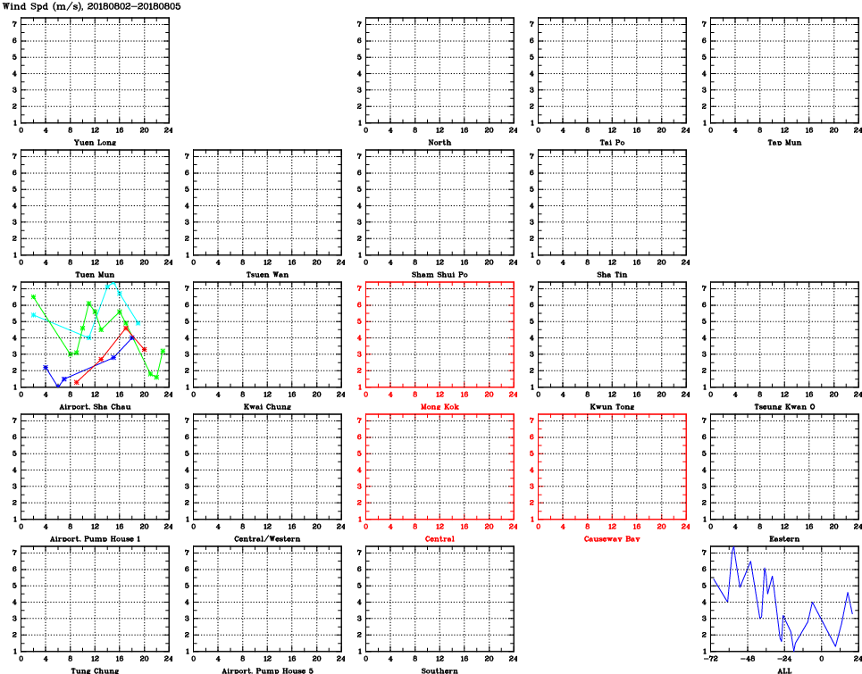 | Air Quality Data Time Series for WS (2018/08/05) | ( Line colors: Day -3 Day -2 Day -1 Current day ) | 2D Map Current AQHI |