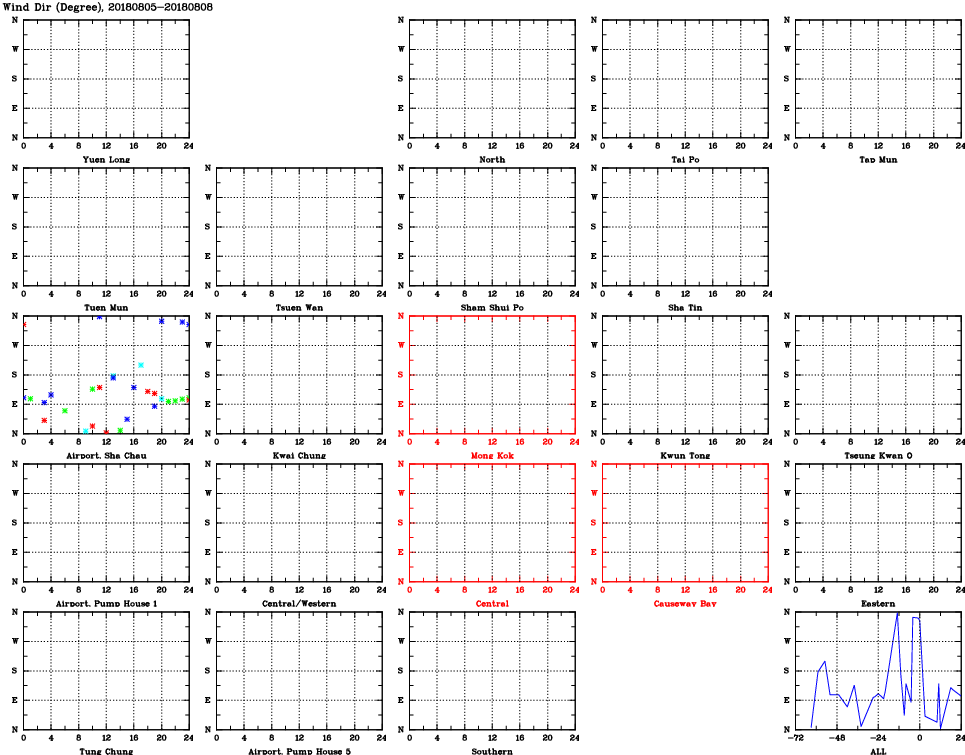 | Air Quality Data Time Series for WD (2018/08/08) | ( Line colors: Day -3 Day -2 Day -1 Current day ) | 2D Map Current AQHI |