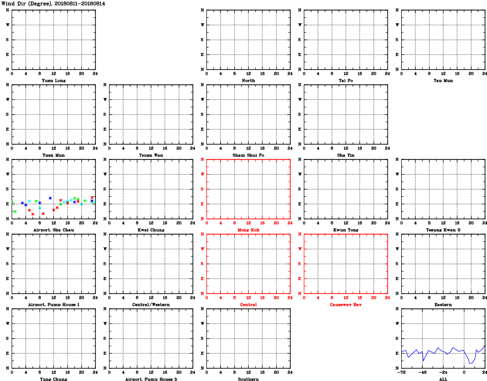 | Air Quality Data Time Series for WD (2018/08/14) | ( Line colors: Day -3 Day -2 Day -1 Current day ) | 2D Map Current AQHI |