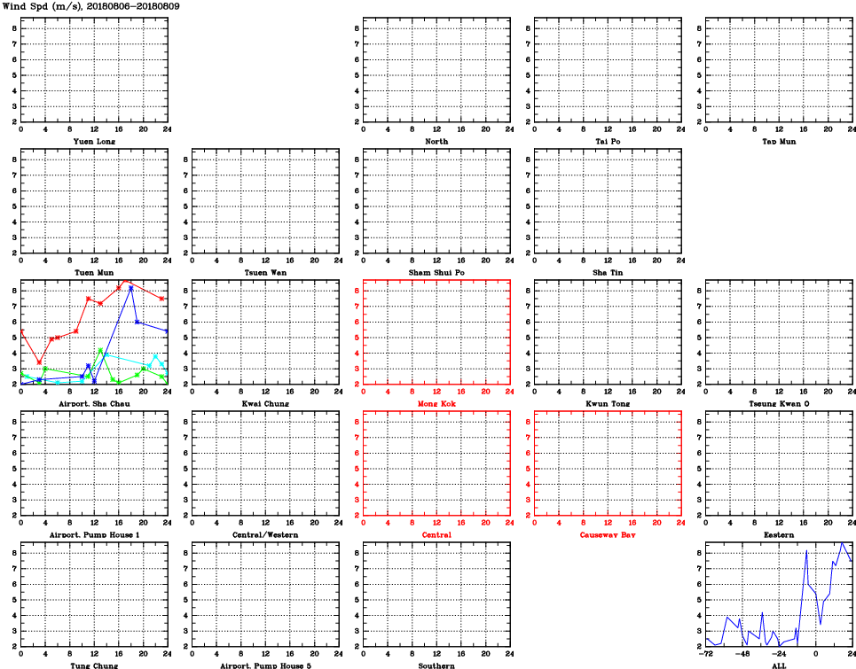 | Air Quality Data Time Series for WS (2018/08/09) | ( Line colors: Day -3 Day -2 Day -1 Current day ) | 2D Map Current AQHI |