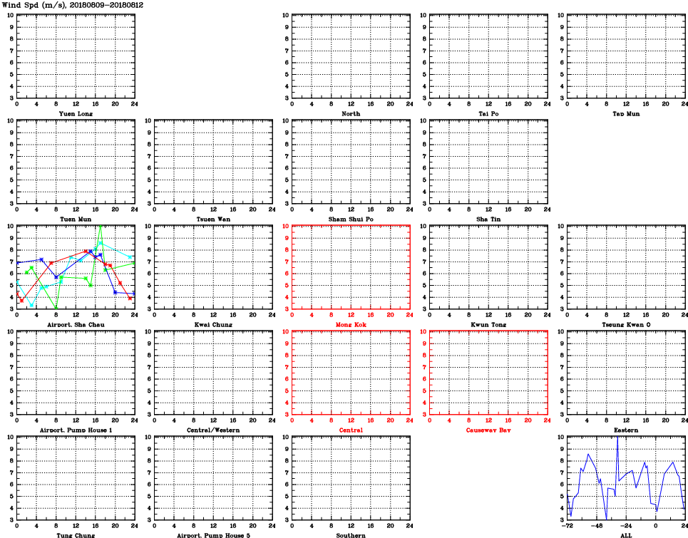 | Air Quality Data Time Series for WS (2018/08/12) | ( Line colors: Day -3 Day -2 Day -1 Current day ) | 2D Map Current AQHI |