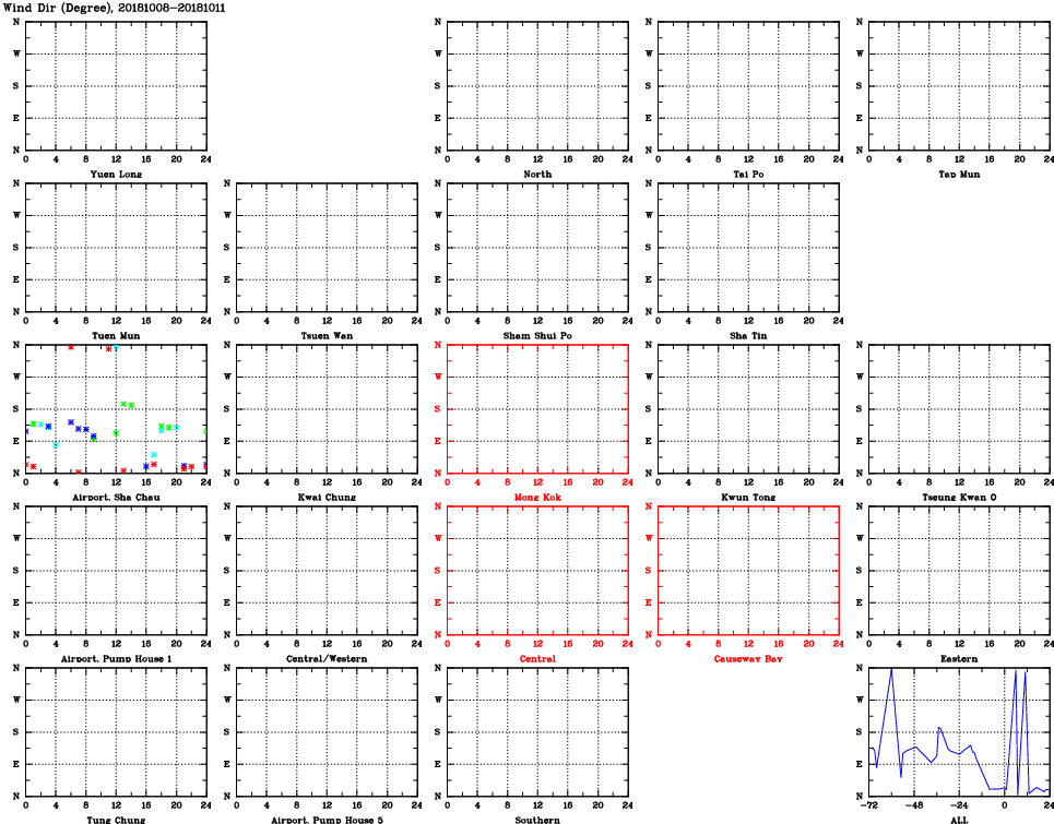| Air Quality Data Time Series for WD (2018/10/11) | ( Line colors: Day -3 Day -2 Day -1 Current day ) | 2D Map Current AQHI |