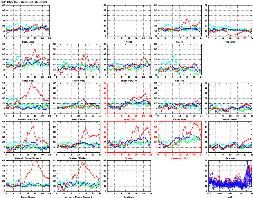 | Air Quality Data Time Series for FSP (2018/10/16) | ( Line colors: Day -3 Day -2 Day -1 Current day ) | 2D Map Current AQHI |