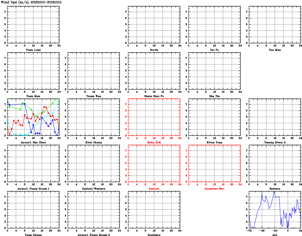 | Air Quality Data Time Series for WS (2018/10/13) | ( Line colors: Day -3 Day -2 Day -1 Current day ) | 2D Map Current AQHI |