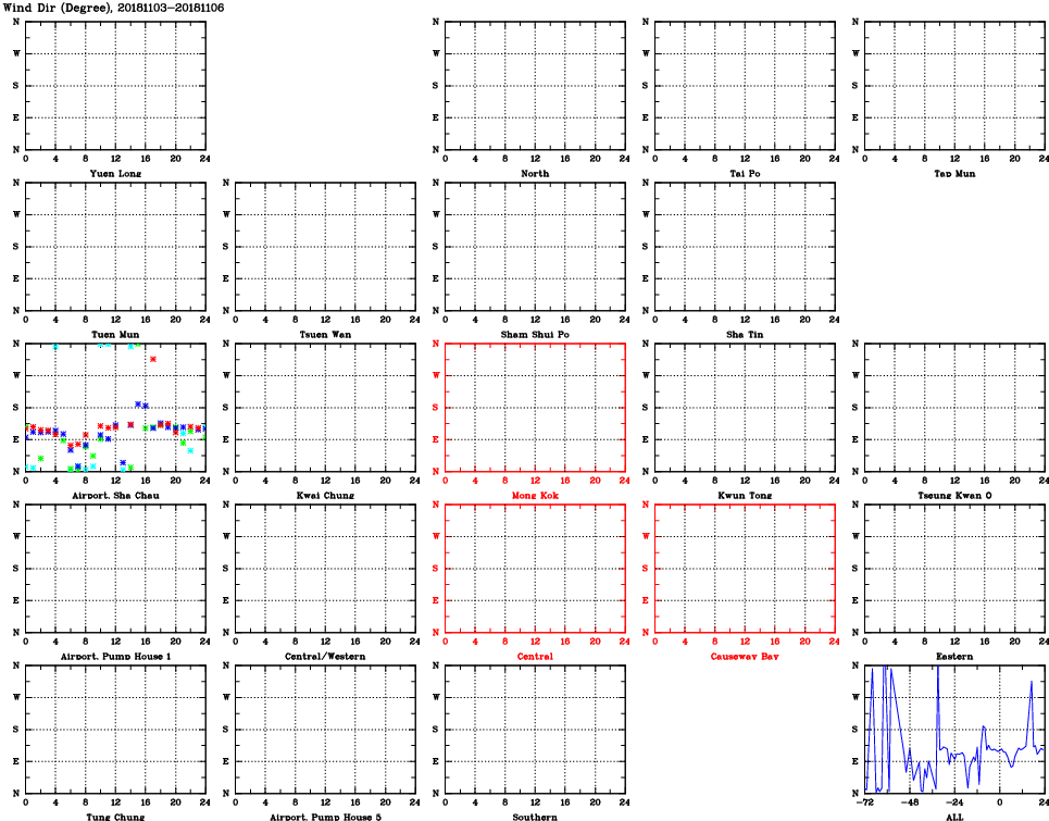 | Air Quality Data Time Series for WD (2018/11/06) | ( Line colors: Day -3 Day -2 Day -1 Current day ) | 2D Map Current AQHI |
