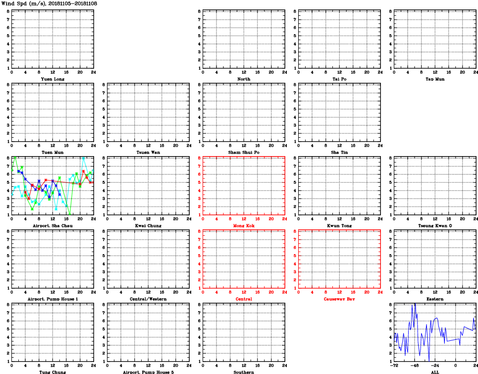 | Air Quality Data Time Series for WS (2018/11/08) | ( Line colors: Day -3 Day -2 Day -1 Current day ) | 2D Map Current AQHI |