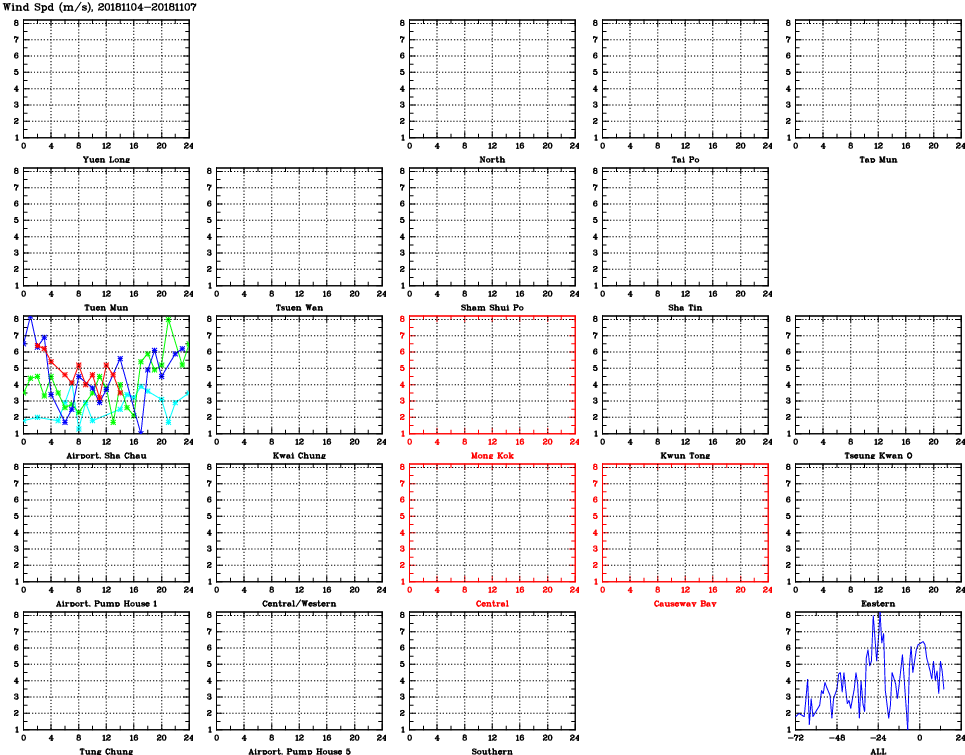 | Air Quality Data Time Series for WS (2018/11/07) | ( Line colors: Day -3 Day -2 Day -1 Current day ) | 2D Map Current AQHI |