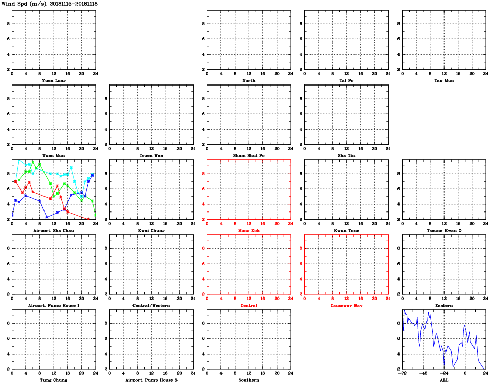 | Air Quality Data Time Series for WS (2018/11/18) | ( Line colors: Day -3 Day -2 Day -1 Current day ) | 2D Map Current AQHI |