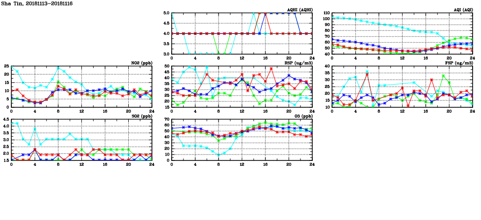 | Air Quality Data Time Series in Sha Tin (2018/11/16) | ( Line colors: Day -3 Day -2 Day -1 Current day ) | 2D Map Current AQHI |