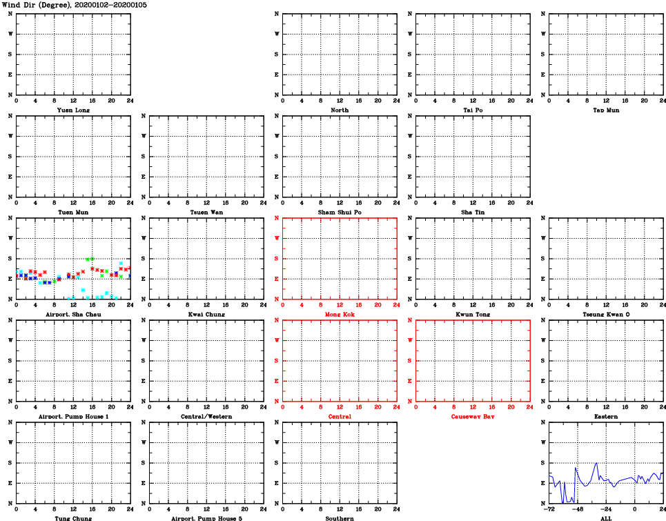 | Air Quality Data Time Series for WD (2020/01/05) | ( Line colors: Day -3 Day -2 Day -1 Current day ) | 2D Map Current AQHI |
