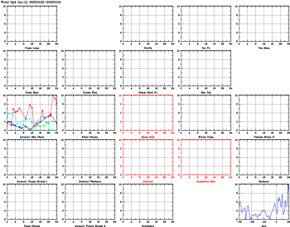 | Air Quality Data Time Series for WS (2020/01/05) | ( Line colors: Day -3 Day -2 Day -1 Current day ) | 2D Map Current AQHI |