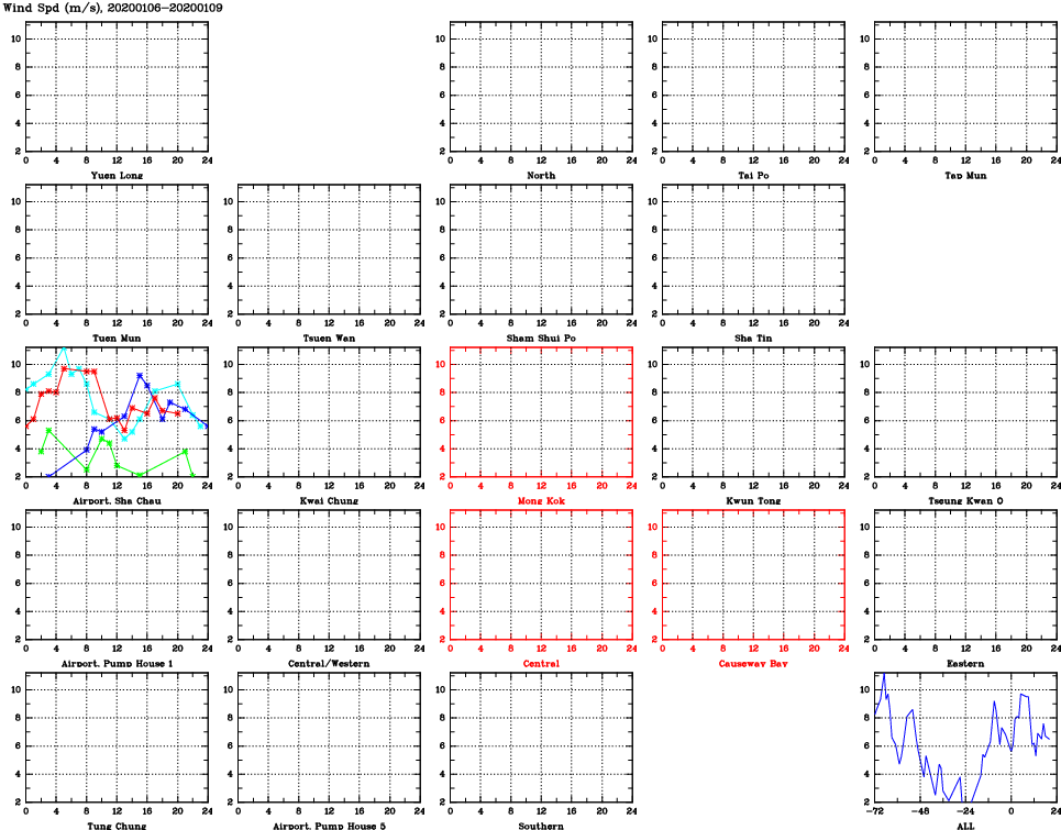 | Air Quality Data Time Series for WS (2020/01/09) | ( Line colors: Day -3 Day -2 Day -1 Current day ) | 2D Map Current AQHI |