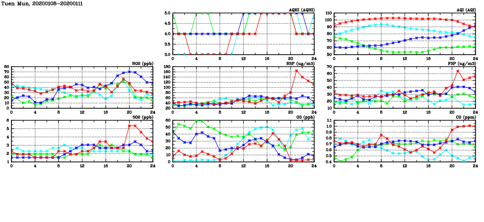 | Parameters: | AQHI | AQI | RSP | FSP | NO2 | SO2 | O3 | CO | Temp | WS | WD |