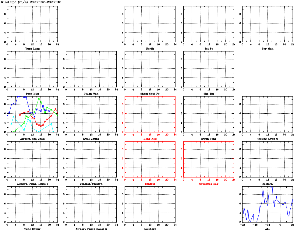 | Air Quality Data Time Series for WS (2020/01/10) | ( Line colors: Day -3 Day -2 Day -1 Current day ) | 2D Map Current AQHI |