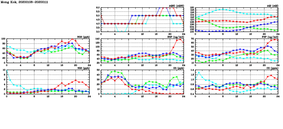 | Parameters: | AQHI | AQI | RSP | FSP | NO2 | SO2 | O3 | CO | Temp | WS | WD |