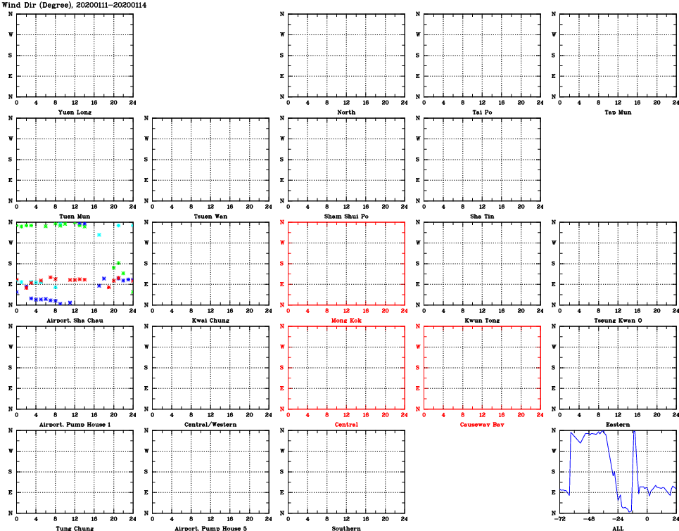 | Air Quality Data Time Series for WD (2020/01/14) | ( Line colors: Day -3 Day -2 Day -1 Current day ) | 2D Map Current AQHI |