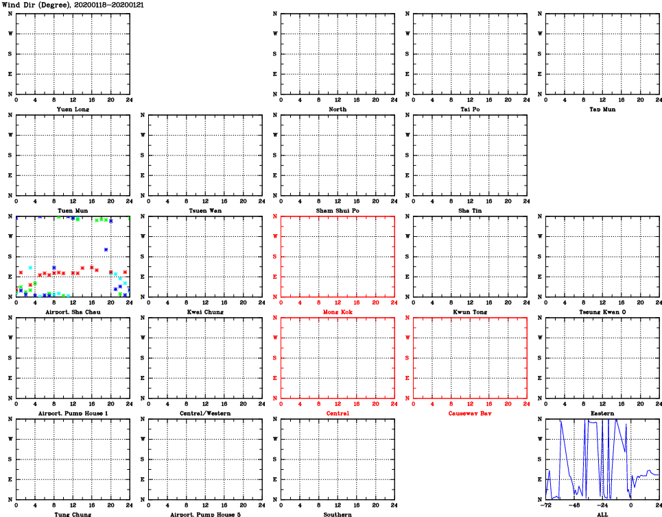 | Air Quality Data Time Series for WD (2020/01/21) | ( Line colors: Day -3 Day -2 Day -1 Current day ) | 2D Map Current AQHI |