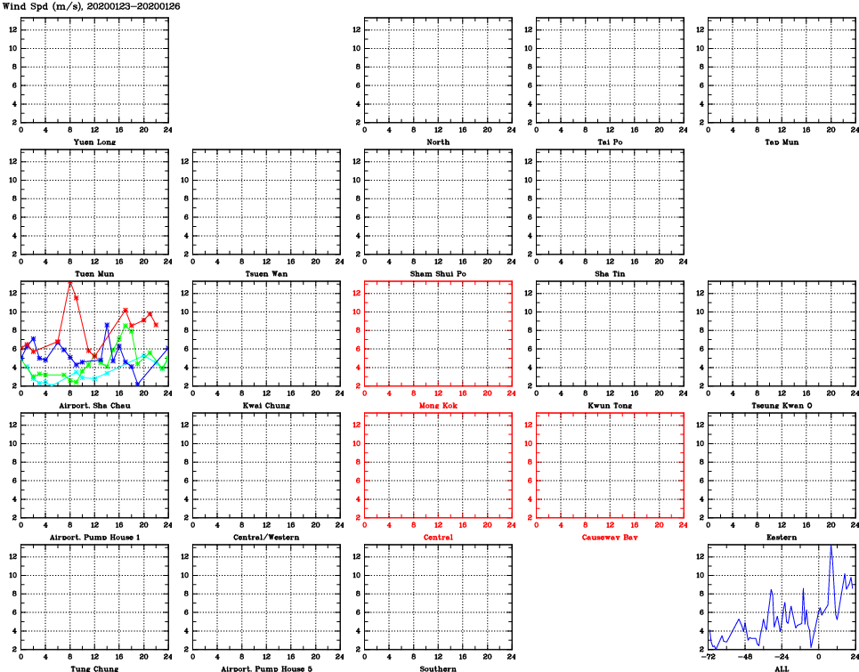 | Air Quality Data Time Series for WS (2020/01/26) | ( Line colors: Day -3 Day -2 Day -1 Current day ) | 2D Map Current AQHI |