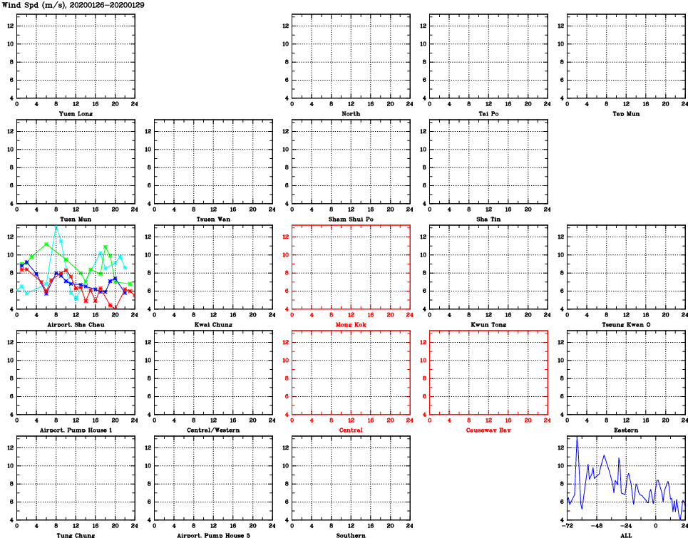 | Air Quality Data Time Series for WS (2020/01/29) | ( Line colors: Day -3 Day -2 Day -1 Current day ) | 2D Map Current AQHI |