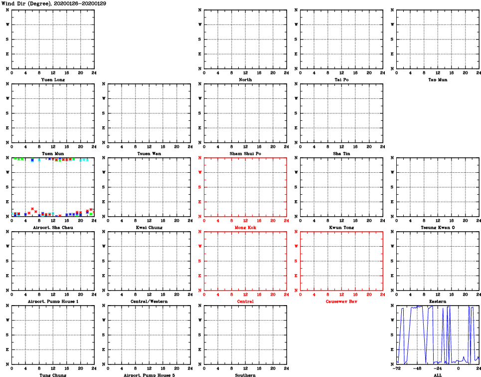 | Air Quality Data Time Series for WD (2020/01/29) | ( Line colors: Day -3 Day -2 Day -1 Current day ) | 2D Map Current AQHI |