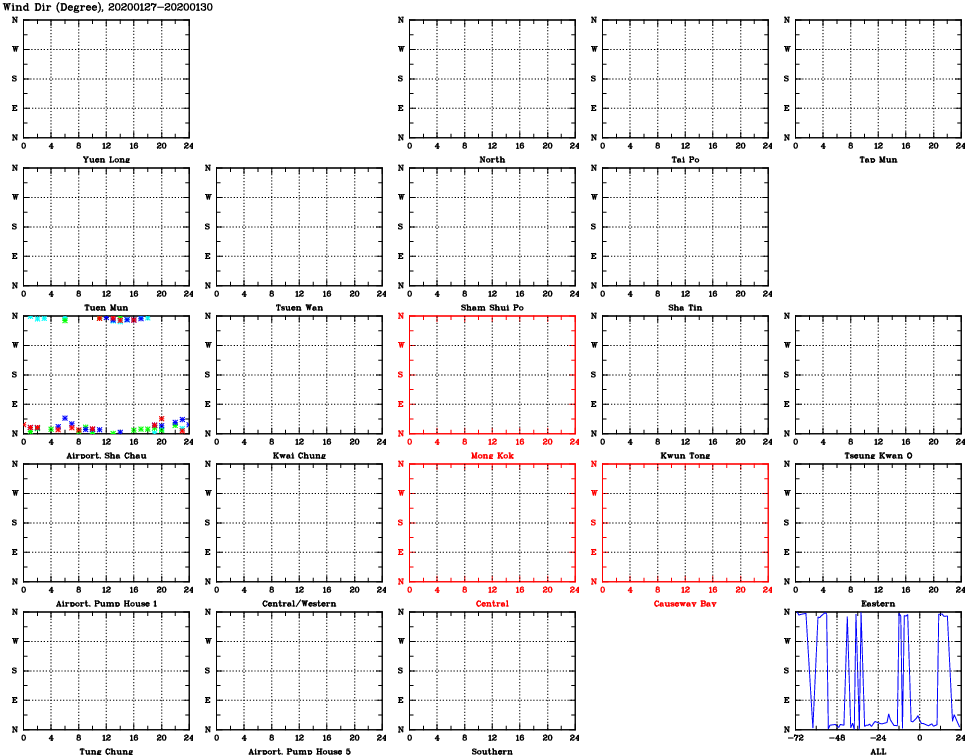 | Air Quality Data Time Series for WD (2020/01/30) | ( Line colors: Day -3 Day -2 Day -1 Current day ) | 2D Map Current AQHI |