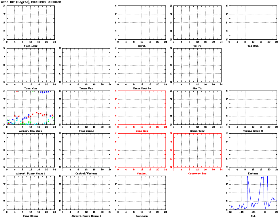 | Air Quality Data Time Series for WD (2020/02/11) | ( Line colors: Day -3 Day -2 Day -1 Current day ) | 2D Map Current AQHI |