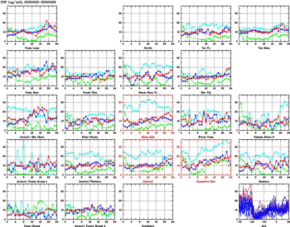 | Air Quality Data Time Series for FSP (2020/02/18) | ( Line colors: Day -3 Day -2 Day -1 Current day ) | 2D Map Current AQHI |