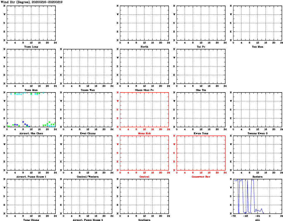| Air Quality Data Time Series for WD (2020/02/19) | ( Line colors: Day -3 Day -2 Day -1 Current day ) | 2D Map Current AQHI |