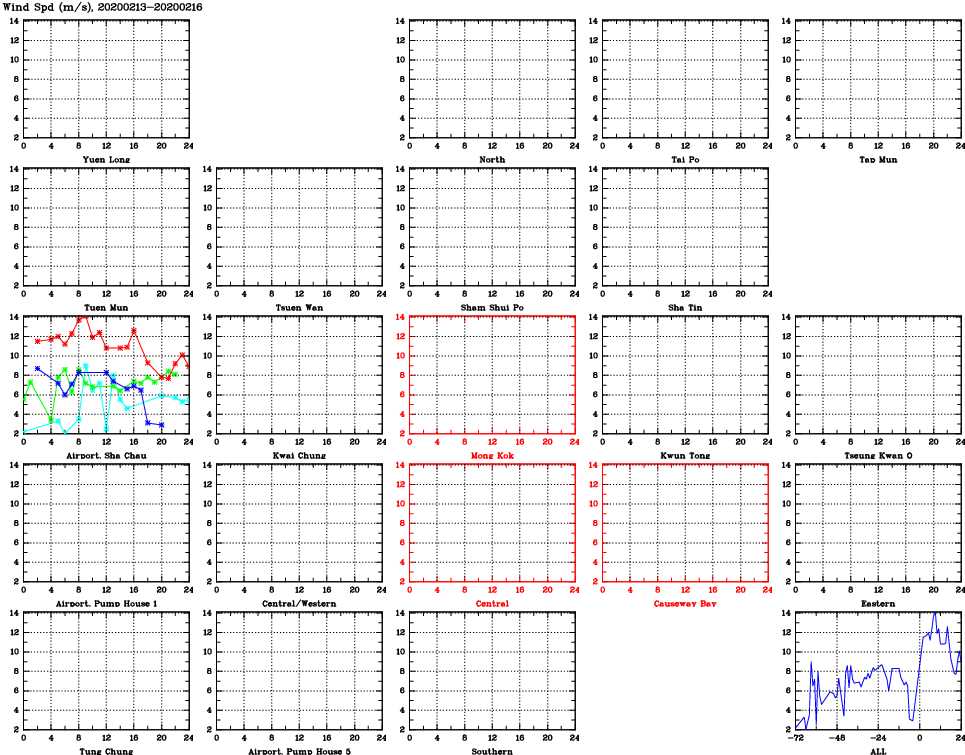 | Air Quality Data Time Series for WS (2020/02/16) | ( Line colors: Day -3 Day -2 Day -1 Current day ) | 2D Map Current AQHI |