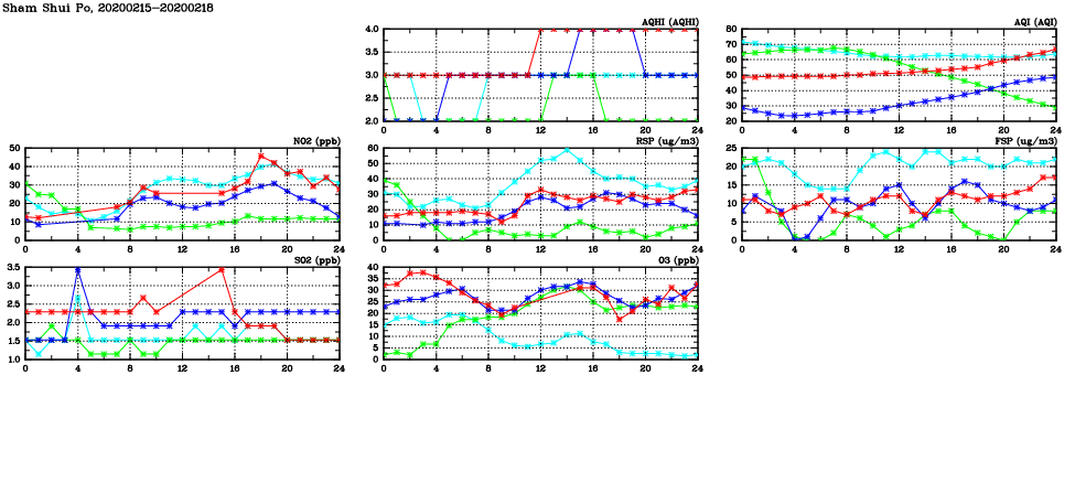 | Parameters: | AQHI | AQI | RSP | FSP | NO2 | SO2 | O3 | CO | Temp | WS | WD |