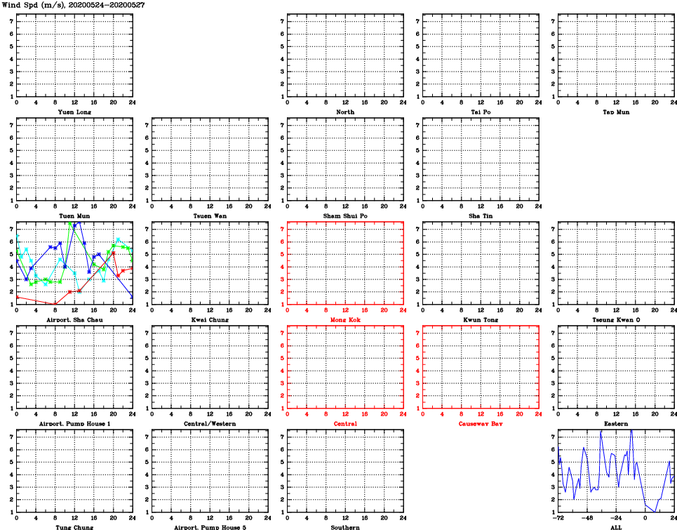| Air Quality Data Time Series for WS (2020/05/27) | ( Line colors: Day -3 Day -2 Day -1 Current day ) | 2D Map Current AQHI |